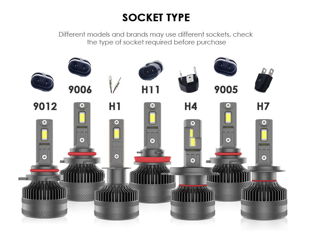 H1, H3, H7, H11,9005,9006,9012,880 | 1, Potência: Iniciação: 150 W Estabilização: 90 W 2, fonte de luz: 4575 (40mil * 40mil * 15pcs) 3, Lumen: 11000Lm ± 5% 4Temperatura da cor: 6000-6500K 5, modo de arrefecimento: ventilador silencioso de alta velocidade + tubo duplo de cobre 6, Tensão: 12-24V 7, Material: alumínio de aviação 8, Fornecimento de energia: externo |
